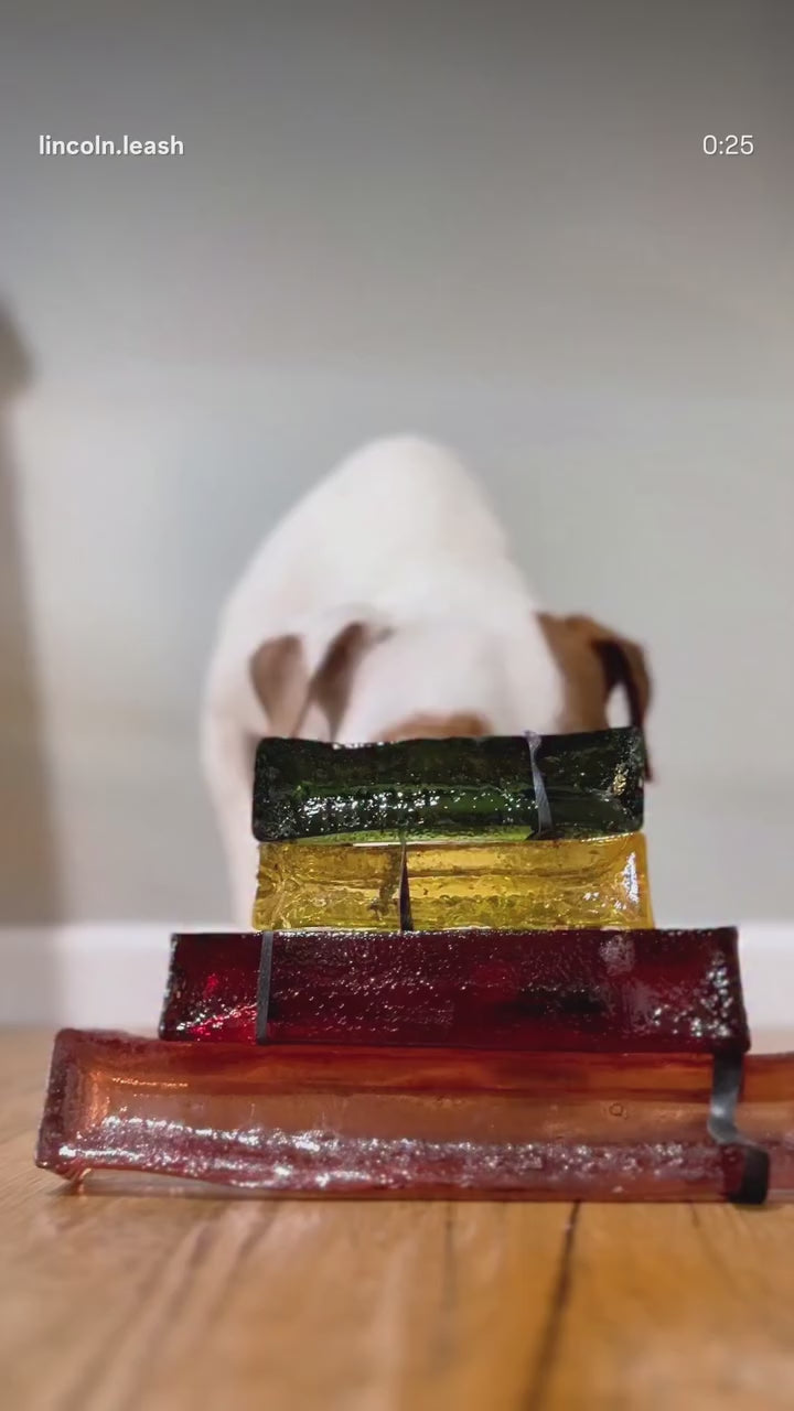 We use real, natural ingredients with minimal processing. This means no two chews will look exactly the same. Variations in size, shape, texture, and color are expected - each one is as unique as the dog enjoying it.
